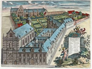 Extraites de la "Chorographia Sacra Brabantiae" de Sanderus, 18e s. : l'abbaye de Leliëndael, le collège des Jésuites, le couvent des Frères Mineurs, la commanderie de Pitzemburg, le prieuré de Muysen et l'abbaye du Val-des-Roses à Wavre-Sainte-Catherine.