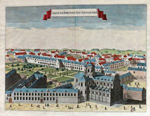 Extraites de la "Chorographia Sacra Brabantiae" de Sanderus, 18e s. : le collège des Jésuites, le prieuré du Val Saint-Martin, les abbayes de Sainte-Gertrude, Vlierbeek et Kortenberg et le couvent des Célestins à Heverlee.