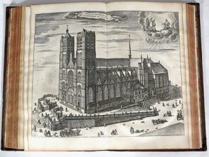 Seconde édition de cette importante description historique du Brabant ecclésiastique et monastique, dont la rarissime princeps fut donnée à Bruxelles par Philippe Vleugaert en 1656-1669. Illustrée du portrait de Sanderus par F. van Bleyswyck, 66 planches (pleines, doubles pages ou dépliantes) de grandes et belles vues d'abbayes et de monastères sis dans les quatre quartiers du duché de Brabant, gravées sur cuivre par R. Blockhuysen, D. Coster et autres. Vignettes aux armoiries monastiques ou portraits de saints de divers ordres religieux en tête de plusieurs chapitres et figures in texto. # BB V-64/66; # Funck 392.
