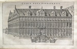 Édition originale tirée à 500 ex. du plus célèbre ouvrage chorographique sur l'ancien comté de Flandre, mais dont le tome Ill, qui devait comprendre le Tournaisis et la Flandre française, ne parut jamais. Illustré de 2 titres gravés et de 67 portraits in texto,-de plus de 35 simples ou doubles pages (cartes, plans, gisants, bâtiments),- plus de 200 in texto figurant des vues de châteaux ou demeures patriciennes. Il existe plusieurs variantes à cette édition et la notre comprend 3 hors-texte : la "Curia antiqua [- nova] Gandavensis" (pp. 96-97), "vue d'Ekelsbeque" (p. 572) et la rare double planche figurant Dunkerque (pp. 632-633),- les cartons collés aux pp. 82-83 (carte de Gand), 95 et 207,-le papillon "Apud Henricum Hondium" sur l'adresse de Blaeu (pp. 18-19, 154-155, 358359 et 386-387),- la rare gravure (p. 170) ajoutée par la suite,- la gravure à demi collée p. 191,- p. 36 de la dernière partie avec l'état non répertorié par la Bibl. Belgicana i.e. sans fleuron gravé sur bois. # BB V-28/35. fl Eerste uitgave van een oplage van 500 ex. van het bekende historiografisch en cartografisch werk over het graafschap Vlaanderen. Geïllustreerd met 2 gegraveerde titels, 3 platen, 67 portretten in de tekst, meer dan 35 enkele of dubbele pagina's in de tekst (kaarten, plattegronden, gebouwen) en meer dan 200 gravures in de tekst (zichten van kastelen en patriciërswoningen). 1 vol. met eigentijdse kalfslederen band en 1 vol. met moderne band (roestvlekken, kleine scheurtjes en herstelde papiermanco's, banden met gebruikssporen).
