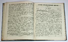 Санкт-Петербург : в тип. Греча, 1853. - №№ 1-36 (Третий год); 33 см. - Составной переплет того времени с зол.тиснением и суперэкслибрисом «F.K.» на корешке. Потертости переплета, редкие временные пятна. Полная художественная хроника за целый год. в №12 помещен любопытный репортаж об аукционной продаже дублетов в Имп. Публичной библиотеке. Описание аук- циона говорит нам, что в этой области мало что измени- лось с тех пор: «Цены, назначен. в каталог, были самые умеренные; цены же, за кот. присуждались книги, были по большей части весьма значительны. Впрочем, если и платили очень дорого, то нередко произвольно и слу- чайно. Иное важное сочинение, имеющее в книжной тор- говле определенную, почти неизменную цену, было покупаемо недорого». в итоге самой дорогой книгой, проданной на том аукционе, стало Герберштейна сочи- нение о России - петербургская перепечатка 1795 года с базельского издания 1567 г. При каталожной цене в 7 руб. эта книга была куплена за 61 руб. Заметим, что в настоящее время это издание - чрезвычайная редкость, практически не встречающаяся на книжном рынке. Трудно даже представить, сколько бы оно стоило сей- час.