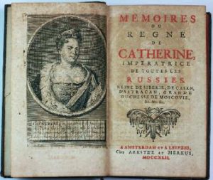 Rousset de Missy, Jean. Mémoires du règne de Catherine impératrice de toutes les Russies, reine de Sibérie, de Casan, d’As-tracan, grande duchesse de Moscovie, &c. &c. &c. Amsterdam ; Leipzig : chezarkste’e et Merkus, 1742.