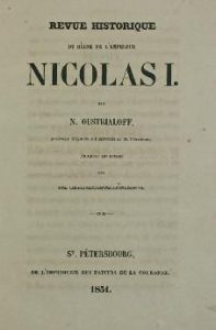Oustrialoff, Nicolas. Revue historique du règne de l’empereur Nicolas I. traduitdurussepare.Babouchkine.St.Pétersbourg,del’imp.Despa-piersdelacouronne,1851. delapréfacedutraducteur:«Danslecoursdemonvoyageàtravers