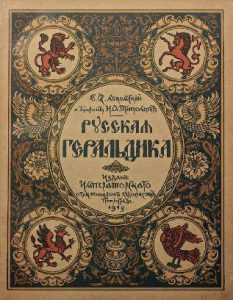 [Ivan Bilibine] Loukomsky, Vladislav, Tipolt, Nicolas (baron). L’Héraldique russe. Petrograd, 1915. In 4° relié pleine toile, 20 planches, couverture illustrée d’après Bilibine conservée.Très bel et unique ouvrage russe consacré à ce noble