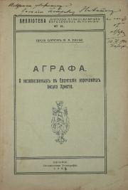 Taube, Michel Alexandrovitch, baron von. Les Agrapha. Sur les paroles de Jésus Christ non écrites dans les Evangiles. Varssovie, 1938. Avec l’envoi de l’auteur à Vassili Nikitine.