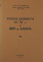 Русскаядипломатия1914-1917гг.ивойнанаБалканах. Монреаль, Братство преп.Иова Почаевского, 1983. - 283 с.: ил., портр.; 20 см. - Шрифтовая изд.обложка. в экз. вложен издательский вкладыш - анонс след.книги князя Трубецкого. С предисловием сына автора кн.м.г. Трубецкого. Отличная сохранность. ПЕРВОе ИЗдание. Отсутствует у Савана и в фондах Рнб и Ргб.