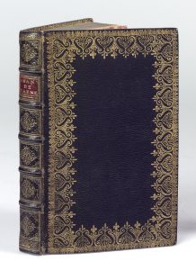 orné, pièce de titre rouge, coupes décorées, roulette intérieure, doublures de maroquin rouge encadrées d'une large dentelle dorée, tranches dorées sur marbrure (Reliure de l'époque).