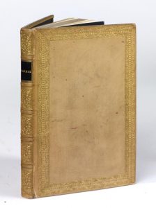 [BECKFORD (William)]. Vathek. Londres, Clarke, 1815. In-8, veau beige, bordure dorée formée de trois roulettes feuillagées, dos richement orné, pièce de titre noire, coupes décorées, roulette intérieure, gardes de papier noir, tranches...