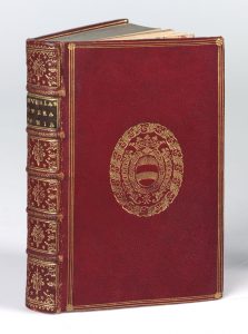 originali. Gorinchem, Cornelis Lever, 1680. – BEVERLAND. De fornicatione cavenda admonitio, sive adhortatio ad pudicitiam et castitatem. [Hollande], juxta exemplar londiniense, 1698. 4 ouvrages en un volume petit in-8, maroquin rouge, triple filet doré avec fleurettes d'angles, armoiries au centre, dos orné aux petits fers, pièce de titre havane, filet sur les coupes, tranches dorées sur marbrure (Reliure de l'époque).