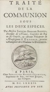 BOSSUET (Jacques-Bénigne). Traité de la communion sous les deux espèces. Paris, Sébastien Marbre-Cramoisy, 1682. In-12, maroquin vert clair janséniste, filets sur les coupes, dentelle intérieure dorée, tranches dorées sur marbrure...