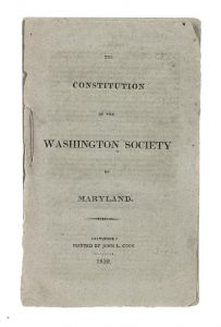 CONSTITUTION OF THE WASHINGTON SOCIETY OF MARYLAND (The). Baltimore, John L. Cook, 1810. Plaquette in-8 de 16 pp., broché sous ficelle.