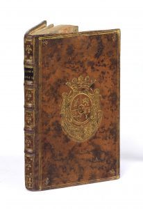 briqueté. Paris, Duchesne, 1754. Petit in-8, veau marbré, triple filet doré, petites pièces d'armes dorées aux angles, armoiries au centre, dos orné, pièce de titre noire, roulette sur les coupes, tranches dorées (Reliure de l'époque).