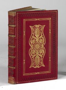 frise végétale à froid, grand médaillon rocaille doré au centre, dos orné de fleurons à froid et roulettes dorées, coupes décorées, roulette intérieure, tranches dorées (Thouvenin).