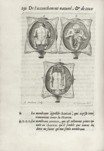 Édition originale du livre fondateur de l'obstétrique moderne. Elle est remarquablement illustrée d'un titre-frontispice gravé sur cuivre par Guillaume Vallet d'après Antoine Paillet contenant un portrait l'auteur et de 29 figures dans le texte ou à pleine page gravées en taille-douce par Audran et Lombars, dont 8 d'après Du Cerceau. Ces figures – dont la qualité, écrit Imbault-Huart, fera autorité et qui seront recopiées pendant des décennies – représentent les organes génitaux de la femme et la position du fœtus, ainsi que les instruments du praticien. Dédié par l'auteur à tous ses chers confrères, les maîtres chirurgiens jurez de la ville de Paris, l'ouvrage connut un grand retentissement à sa parution, dont témoignent les huit éditions successives et les nombreuses traductions dont il fit l'objet jusqu'en 1740. Bel exemplaire en reliure de l'époque, portant sur le titre l'ex-libris manuscrit du médecin Ant. Delaville et une note marginale p. 500. Quelques habiles restaurations à la reliure. Norman, n°1461 – Imbault-Huart : En français dans le texte, n°107 – Garrison & Morton, n° 6147 – Cutter & Viets, 77-81 – Lilly, 85.