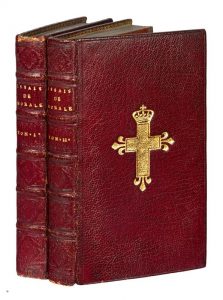 Élégante reliure en maroquin rouge ornée de la croix de la maison royale de Saint-Cyr. Exemplaire réglé. Tomes I et II présentés seuls. Manques infimes sur les coiffes.