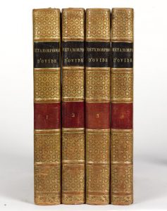 Un des plus beaux ouvrages illustrés du xviiie siècle, dû au soins de l'éditeur Basan et du graveur Le Mire. Le poème original d'Ovide y est accompagné de la traduction française et des notes de l'abbé Banier, et d'une Vie d'Ovide tirée de ses écrits par M. G***. L'ouvrage est illustré d'un titre-frontispice exécuté par Choffard, de 139 figures hors texte dessinées par Boucher, Eisen, Gravelot, Le Prince, Monnet, Moreau, Parizeau, Saint-Gois et gravées sur cuivre par divers artistes sous la direction de Le Mire, ainsi que de 3 planches de dédicace, 30 vignettes, 4 fleurons sur les titres des volumes et un cul-de-lampe à pleine page gravés par Choffard d'après ses dessins ou ceux de Monnet. Bel exemplaire dans une jolie reliure de Bozérian, bien complet de l'avis au relieur, provenant du second tirage sous cette date. Petits frottements sur deux coiffes, les coins et les mors. Quelques rousseurs éparses, comme toujours. Cohen, 769-773.