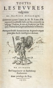PÉTRARQUE. Toutes les euvres vulgaires de Françoys Pétrarque. Avignon, Barthélémy Bonhomme, 1555. In-8, veau granité, filet gras doré, dos orné, pièce de titre rouge, filet sur les coupes, tranches jonquille (Reliure anglaise vers 1800).