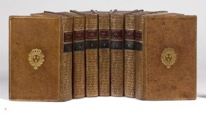 RACINE (Jean). Œuvres, avec des commentaires par M. Luneau de Boisjermain. Paris, imprimerie de Louis Cellot (chez Panckoucke), 1768 [puis] Londres, s.n., 1768. 7 volumes in-8, veau moucheté, triple filet doré, armoiries au centre, dos lisse orné...