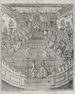 Rare seconde édition de ce livre de danse fondamental. Elle est illustrée d’un frontispice et de 59 curieuses figures hors texte, dont 4 dépliantes, dessinées par Pierre Rameau et gravées à l’eau-forte par lui-même et J. Denis. L'exemplaire est bien complet de la rarissime planche dépliante représentant une salle de bal, qui fait défaut à beaucoup d'exemplaires, ici en parfaite condition. Avec les traités de Feuillet et Rameau, la danse acquiert en France son véritable statut ; ils marquent, en tant qu'expression artistique, une étape décisive dans le développement de la technique de cette discipline. Publié pour la première fois en 1725, Le Maître à danser, manuel en partie destiné à la jeunesse qui veut apprendre à bien danser, s'articule autour de deux parties. Dans la première, le maître à danser des pages de la reine d'Espagne explique en détail les différents pas, certains sont repris de la Chorégraphie de Feuillet et enrichis de nombreuses remarques, notamment sur les oppositions et les équilibres. La règle relative aux cinq positions essentielles des pieds s'y trouve exposée pour la première fois, tandis que la deuxième partie de l'ouvrage s'intéresse au port des bras. Coiffe de tête restaurée, pièce de titre renouvelée, quelques habituelles rousseurs éparses. Magriel, n°122 – Hagelin, 78-79 – Lipperheide, n°3070 – Beaumont, n°134 (éd. de 1725) – Derra de Moroda : Dance Library, n°2130.