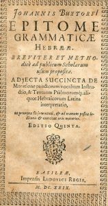 Grammaire hébraïque.- BUXTORF (Johannes). Epitome grammaticae Hebreaeae. Breviter et methodicè ad publicum scholarum usum proposita. Editio quinta. Basileae [à Bâle], Impensis Ludovici Regis, 1629, petit 8°, [16]-120 p., plein vélin de...