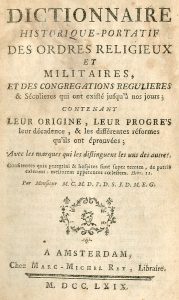 Dictionnaire historique-portatif des ordres religieux et militaires, et des congrégations regulières et séculieres qui ont existé jusqu'à nos jours ; contenant leur origine, leur progrès leur décadence, et les différentes réformes qu'ils...