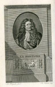 portr. et 3 figures h. t. et 284 p., 5 figures h. t., plein maroquin rouge à longs grains lég. postérieur, dos lisses ornés de filets et pointillés dorés, plats encadrés d'une roulette dorée, petite roulette dorée sur les coupes, petite roulette dorée intérieure (qq. usures, qq. taches, très lég. bruniss.). Charmant ex. orné d'un portrait de La Fontaine d'après Rigaud et de 8 figures de Moreau (Cohen, 584).