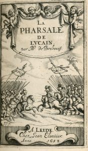 LUCAIN. La Pharsale de Lucain ou les guerres civiles de Cesar et de Pompée. En vers françois par M. de Breboeuf. Leide, Jean Elsevier, 1658, in-32, titre-front. gravé, 417-1 blanche p., plein maroquin rouge, dos à nerfs finement décoré, triple...