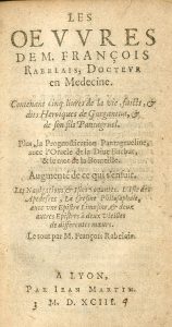 RABELAIS (François). Les Oeuvres de M. François Rabelais, docteur en medecine. Contenant cinq livres de la vie, faicts, et dits Heroiques de Gargantua, et de son fils Pantagruel. Plus, la Prognostication Pantagrueline, avec l'Oracle de la dite...