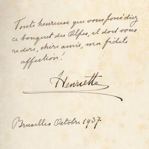 VENDOME (Duchesse Henriette de). Fleurs des Alpes cueillies dans mes excursions. Lausanne, Gonin, 1928, 2 vol. 4°, plein maroquin bleu, dos lisses, titres dorés, filet doré d'encadrement sur les plats, têtes dorées, couv. cons. (rousseurs sur...