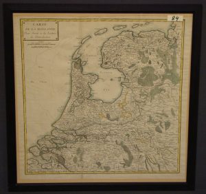 Hollande.- Carte de la Hollande pour servir à la Lecture de l'Introduction. S.l.n.d. (18e siècle). Dim. : 60 x 60 cm, sous cadre noir, contours en coloris.