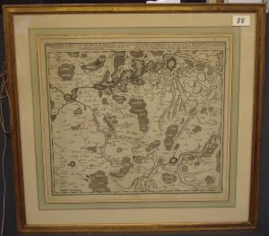 Mons.- BEAURAIN (Chevalier J. de). Territoire de Mons dans le Comté de Hainaut ou l'on peut voir la victorieuse bataille des Alliez contre les François, donnée le 11 septembre 1709. Carte en noir et blanc sous passe-partout et cadre doré. Dim....