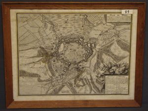 Mons.- Plan de Mons, Ville Capitale du Hainaut et très forte tant par sa situation[...] fut assiégée par l'Armée des Alliez sous la conduite du Prince d'Orange [...] le 25 septembre 1709 [...], dessinée par I. Leopold. Carte en noir et blanc...
