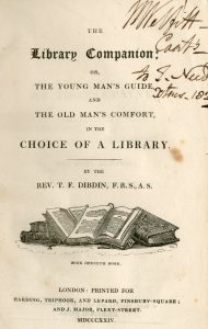 DIBDIN (Th. Frognall). The Library Companion, or the Young Man's Guide and the Old Man's Comfort in the Choice of a Library. London, Harding, Triphhok and Lepard, 1824, 8°, LII-912 p., plein veau brun, dos à 4 nerfs, filets à froid (dos refait)....