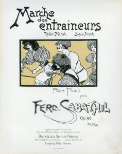 Partitions.- Ensemble de 35 partitions musicales (format 4°) illustrées de motifs Art Nouveau en couleurs. Bel ensemble sous pochette plastique, dans un album à 2 anneaux.