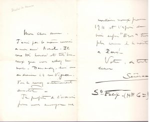 Il écrit à son ami Auriol : « Il sera très honoré et très heureux que vous alliez le voir ». Vreux pour 1911, avec « l'espoir de voir enfin Éros triompher comme il le mérite à Paris ! »...