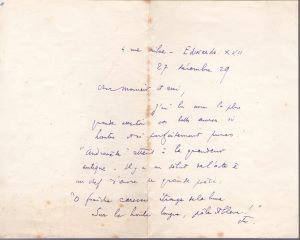 Charles TOURNEMIRE (1870-1939) organiste et compositeur. L.A.S., Paris 27 décembre 1929, [à Jacques Heugel] ; 1 page et demie in-fol. (lég. rouss., petite fente réparée).