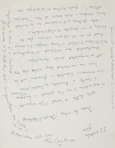 Jean COCTEAU. L.A.S., 22 octobre 1962, à Henry de Montherlant ; 1 page et quart in-4.