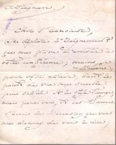 23 octobre 1907. Il est sensible au souvenir de son aimable lettre... Avril 1908. Regrets de ne pouvoir assister à sa conférence, moins « pour votre auteur, dont le point de vue me semble peu subtil et le style étrange, mais pour vous »... 9 décembre. « J'ai transmis à mon statuaire votre désir obligeant pour nous deux »...