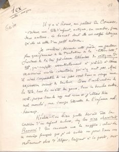 Manuscrit de premier jet, corrigé et barré d'un grand trait diagonal, au dos d'un fragment de tapuscrit et de 2 lettres (1938-1939), qui semble inédit. « Si l'on pouvait arrêter la roue du destin de la France à l'instant où j'écris cette phrase [...], on rêverait sur cette guerre qui n'arrive pas à éclater, précédée d'une “révolution” qui n'arriva pas à éclater »... Et Montherlant, après Munich, de mettre en garde contre les « simplifications ». « Il y a à Rome, au palais du Conservateur, une tête d'enfant, antique, en marbre, grandeur nature. Le bonnet dont elle est coiffée indique qu'elle est celle d'un petit esclave »... Montherlant explique pourquoi il a choisi de reproduire cette reuvre en frontispice d'un livre.