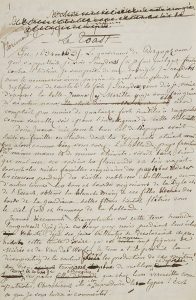 Manuscrit complet, de premier jet, de ce conte romantique, un des tout premiers textes de George Sand romancière. Il a paru dans les Soirées littéraires de Paris, recueil publié chez Janet en décembre 1832, peu après les romans Indiana et Valentine ; il a été recueilli dans La Coupe chez Calmann-Lévy en mars 1876. « L'action se passe aux Pays-Bas au XVIIe siècle. Le vieux gouverneur de Berg-op-Zoom, Sneyders a épousé une jeune et belle Espagnole, Juana. La pauvre Juana, qui a grandi sous le soleil de l'Andalousie, s'ennuie et languit dans ce pays humide et triste, entourée de Hollandais lourds et prosaïques. “Joignez à l'influence du climat la société d'un mari fort riche, fort sensé, fort entendu en ce qui touche ses affaires et son gouvernement, mais fort ennuyeux, il faut bien le dire, et vous comprendrez que la belle et tendre Juana pouvait bien avoir le mal du pays...” Elle a, comme on peut s'y attendre, les yeux noirs et tristes, la pâleur mate et l'air mélancolique de la soumission, traits d'une femme bien connue de George Sand, qui avait le malheur de vivre depuis neuf ans avec un mari qui, quoiqu'il ne fut pas gouverneur de Berg-op-Zoom, n'en était pas moins aussi prosaïque que l'honorable Sneyders. Heureusement pour la pauvre Juana, il se trouvait dans la maison du gouverneur un jeune page aux yeux noirs, Ramiro, né aussi dans la chaude Espagne, amateur de musique, chantant parfaitement les anciennes romances espagnoles ; il était, en outre, “d'une noble et antique maison, ce qui, dans ce temps-là, ne gâtait rien”, ajoute l'auteur, qui, de la première à la dernière ligne de cette gentille bluette, ne se départit pas d'un ton gai, léger, plein d'humour et d'entrain le plus parfait. Sneyders aurait pu, semblerait-il, ne pas avoir trop d'inquiétudes, vu la conduite irréprochable de sa jeune femme et la chaste innocence de son page de seize ans, et compter, en plus, sur “le climat refroidissant de la Flandre”. Il n'aurait donc du avoir aucun motif de jalousie, “ce dont il était contrarié parfois autant que flatté car il y a certaines liaisons pures, discrètes, mystérieuses, qui font plus de tort au repos d’un mari que de franches et loyales infidélités”. En vain Sneyders essaye-t-il d'espionner les jeunes gens, il perd son temps. “On peut surprendre en flagrant délit des coupables, découvrir les manèges de la passion, - on ne peut surprendre ou démasquer un amour pur, profond et innocent”. Sneyders se met à railler le page, se moque de sa musique et de ses empressements ; peine inutile ! Alors, il recourt au crime, déguisé de la plus belle façon. Sous prétexte d'une mission urgente, Sneyders envoie le jeune page chez le gouverneur d'Anvers, son parent, espérant qu'il y sera retenu comme otage espagnol ou même tué (l'action se passe à l'époque de la lutte des Pays-Bas contre l'Espagne), d'autant plus que le gouverneur est l'ennemi juré du père et de toute la famille de Ramiro. Mais le vieux Sneyders se réjouit trop tot d'avoir éconduit le jeune homme ; il a trop compté sur la perfidie de son parent, homme d'honneur ; il a oublié que le petit dieu capricieux protège ses fidèles adorateurs et se moque des vieillards, ses ennemis. Un jour, après un bon diner et après avoir aiguisé sa langue sur l'“Espagne, les femmes, les romances, les petits chiens et les pages, joueurs de guitare ”, Sneyders veut méchamment faire boire Juana à la santé du gouverneur d'Anvers. Il triomphe perfidement de sa victoire sur Ramiro et se réjouit déjà de sa mort, lorsque Juana, au désespoir du péril que court le jeune homme, prend le verre en main et, bouleversée par la cruelle plaisanterie de son mari, s'écrie : “Si la confiance des Anversois dans leur gouverneur est si aveugle, dit-elle, c'est qu'apparemment ils le savent incapable d'une action lâche et d'un crime inutile”. Tout à coup une jeune voix se fait entendre sous la fenêtre, chantant le refrain d'une romance favorite de Juana, et celle-ci boit joyeusement à la santé de “son ami et parent, le glorieux gouverneur d'Anvers”. Après avoir calmé sa bien-aimée, Ramiro se cache pour échapper à la vengeance du très cher Sneyders, qui, cette fois, aurait certainement tout fait pour le perdre. La victoire reste à la jeunesse. Ramiro et Juana ne se reverront peut-être plus, mais ce moment de bonheur a compensé tous leurs chagrins. L'amour a vaincu et se rit des vieux maris, des chaïnes, des proscriptions, des défenses, des lois et des sévices. Vive l'amour, vive tout sentiment pur et humain, voilà ce que nous dit ce petit conte gracieux et gai, écrit d'une plume alerte et avec une verve et un entrain tout à fait surprenants. » (W. Karénine, George Sand, sa vie et ses №uvres, t. I, p. 379-382). Rédigé à l'encre brune sur 7 feuillets (les deux premiers doubles, filigrane J. Whatman 1832), très remplis de sa toute première écriture, très petite, le manuscrit a servi pour l'impression ; il présente de nombreuses ratures et corrections. Il est signé en fin « G. Sand ». Une note de sa main en tête a été soigneusement biffée avant la composition du texte : « Mme Tastu voudra bien intituler le conte à son gré. Si elle trouve l'histoire trop longue, elle trouvera bien le moyen d'y faire des coupures ».