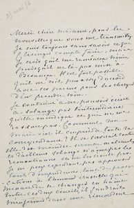 Importante lettre sur sa fille Solange, le ménage Clésinger, et sa petite-fille Jeanne dite Nini ; la lettre est adressée à la directrice du pensionnat où avait été élevée Solange. Elle la remercie des nouvelles qu'elle lui transmet. « Je suis toujours sans savoir ce que Clésinger compte faire, mais je crois qu'il me ramènera Nini, puisqu'il ne l'a pas mise à Besançon. Il est fort possible qu'il ne soit pas assez d'accord avec ses parens pour les charger d'en prendre soin. Je continue à ne pouvoir écrire à Solange [que] par l'intermédiaire qu'elle m'indique et qui ne me rassure pas. Comment son mari s'est-il emparé de toute sa correspondance ? Il se servirait contre elle du moindre sermon maternel, et d'ailleurs Solange n'aime pas les remontrances et ne les écoute pas. Je ne peux cependant pas approuver tant d'imprudences, tant de provocations à l'humeur irascible qui menace de se changer en haine. Entre ces deux écueils, il faudrait m'enfermer dans une réserve dont la froideur lui serait plus pénible que mon silence. Et puis, je vous avoue qu'en présence d'une lutte où rien de part ni d'autre ne suit la logique naturelle, ni en bien ni en mal, je ne sais comment la conseiller pour ses affaires. J'attends des renseignemens que je n'ai pas encore reçus, sur les projets de procès de Cl. [Clésinger] si tant est qu'il ait des projets. Je crois que son but principal est d'effrayer, de menacer, et par là de se dispenser de payer une pension. Je ne puis le croire assez ennemi de lui-même pour faire un scandale qui retomberait sur lui à moitié. Et pourtant si Solange provoque cet acte de folie, en courant après sa fille, ou en affichant des relations qu'il incrimine, on ne peut répondre de rien. Rien n'est encore en péril du coté de Nini, et comme il m'a dit qu'au plus tard il me la ramènerait à la fin du mois, comme elle est chez une femme que je ne connais pas, mais que Solange dit être pleine de cxur et d’esprit, et nullement disposée à la blesser, il me semble que courir après l'enfant ou aller s'établir près d'elle, comme elle prétend en avoir la pensée, est le moyen le plus sur de la faire emmener plus loin et cacher tout à fait. Pour moi, si Cl. exige, en me rendant sa fille, que je la garde sans permettre à Solange de la voir, il faudra bien que je me refuse à la reprendre à de telles conditions. Dans ce cas, et dans tous les cas peut-être, pour soustraire cette pauvre enfant à des promenades sans but et sans fin, je tenterai de lui persuader de vous la confier, et c'est alors que Sol ferait sagement et pour elle et pour Nini, de s'abstenir de la disputer et même de la faire sortir. Le mari n'ayant plus le but ou le prétexte d'exercer son autorité sur l'enfant puisqu'elle ne lui serait plus contestée, n'aurait plus pour but d'une poursuite judiciaire, qu'une soif de vengeance et de scandale. Dans cette situation, il ne lui serait pas aussi facile qu'il se l'imagine, de trouver des avocats honorables disposés à poursuivre et des juges disposés à servir son ressentiment. Dites tout cela à Solange, bonne Madame, puisque vous voulez bien ne pas vous lasser de cette mission toute maternelle. Elle écoutera peut-être vos avis et quant à moi, je vous aurai un nouveau sujet de gratitude bien vraie »... Correspondance, XII, 6288.