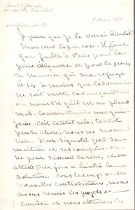 « Je pense que je te verrai bientot mon cher lapin rose. Il faut que j'aille à Paris pour la pièce d'Alexandre [Les Idées de Mme Aubray de Dumas fils] et pour le procès de Maurice qui sera rejugé le 14, à moins que l'adversaire ne soit mort, car aujourd'hui on nous dit qu'il est au plus mal. Comme depuis une quinzaine, c'est tantot cela, tantot peu de chose, nous ne savons rien. Il est séquestré par sa maïtresse et ses compères. On ne peut s'assurer de rien, et on attend, d'un jour à l'autre, la solution. Sous le coup de ces nouvelles contradictoires, nous avons remis les projets de comédie, et nous attendons les événements. Tu n'as pas à te déranger, cher vieux, pour venir me chercher ou me reconduire. Probablement j'aurai Maurice à moins qu'il ne doive aller à Nérac - et dans tous les cas je me porte très bien et suis très vaillante pour voyager seule. Tâchons d'aller ensemble à la pièce d'Alexandre. Certes j'y aurai aussi de l'émotion. Une si belle chose a toujours du danger. Est-ce que tes tableaux seront chez toi ? J'espère voir Pénélope et Phryné. Moi j'ai bien travaillé aussi. Mais j'en ai encore pour un mois ou six semaines après quelques jours passés à Paris. Je te bige de tout mon creur »... Correspondance, XX, 13070.