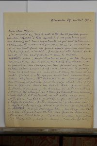 Correspondance amicale à l'auteur du volume Philippe Soupault pour la collection « Poètes d'aujourd'hui » de Seghers (1957). Souvenirs amicaux des années 40 sur des cartes postales, le plus souvent illustrées, envoyées du Brésil, des États-Unis, d'Istamboul, Gstaad, Bâle et Brazzaville. Il annonce sa décision avec Seghers selon laquelle c'est Dupuy qui doit faire « le livre Ph. S. » [dans la collection « Poètes d'aujourd'hui »] (3 novembre 1955). Il l'y encourage, quoiqu'il n'attache pas une grande importance à la renommée : « Le sourire d'une femme m'intéresse davantage » (8 novembre 1955). Ils parleront un jour des chansons de Dupuy, qu'il aime beaucoup : « Je ne voudrais pas que vous tombiez dans ce piège : faire populaire ». Il répondra avec attention à ses questions « très pertinentes et très intéressantes » (21 juillet 1956). Réponses à 7 questions : « Nous avions, André Breton et moi, de très longues conversations au sujet de la poésie (de l'essence de la poésie) et des images, de leur formation, de leur valeur et leur pouvoir [.] Nous en parlions en marchant dans les rues et au café. J'étais à cette époque mobilisé comme auxiliaire ». ; il évoque aussi l'écriture automatique, Rimbaud, Lautréamont, Pierre Reverdy, Pierre Janet, etc. (29 juillet 1956). Il trouve « excellente » l'étude d'Henri, sur laquelle il travaille : explications sur un feuillet séparé sur le sens du voyage (23 septembre 1956) ; il dresse aussi pour son biographe la liste des voyages faits depuis 1912 (2 octobre 1956), et lui envoie une photo de sa maison natale (8 mars 1957). Remerciements pour le Philippe S. : en dépit du sujet, le texte de H.J.D. est excellent (14 juin 1957). Félicitations sur un poème, et consolations pour la solitude dont se plaint Henri (25 février 1962). Soupault est triste de voir son ami se cogner la tête contre un mur : « Il y a un snobisme dont la source est ce Jean Pauhan, pisse-froid, qui exerce sa puissance pour stériliser la poésie qu'il déteste au fond. L'Académie lui va bien et devrait le rendre ridicule et suspect » (6 juin 1964). Envoi d'une lettre de Jean Cayrol - « Prudent ! » - et remerciements pour son aide dans la liquidation (19 mai 1965).