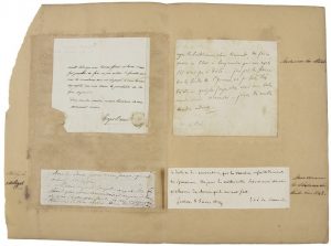 Germaine Necker, baronne de STAëL (1766-1817). L.A., à Jean-Charles-Léonard Simonde de Sismondi ; 1 page in-12 (montée sur un double feuillet avec des fragments a.s. de Prosper Barante, August Wilhelm Schlegel et Sismondi).
