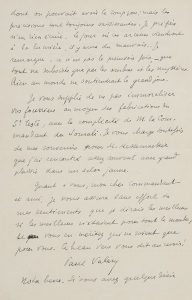 Paul VALERY. L.A.S., Paris 3 octobre 1925, [au commandant (futur vice-amiral) Jean Fernet] ; 3 pages et quart in-8.