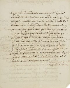 Intéressante lettre au sujet du libelle Lettres de M. de Voltaire à ses amis du Parnasse. « Je suis votre confrère en Littérature », et il intervient sous la protection du duc de Praslin. « On a imprimé à Amsterdam chez Marc Michel Rey sous le nom de Genêve, un livre intitulé, Lettres de Mr de Voltaire à ses amis du Parnasse. Il se trouve que ces prétendus amis du Parnasse sont, le roi de Prusse, le feu roi de Pologne Stanislas, l’Electeur Palatin, le Duc de Bouillon, le Duc de La Vallière etca ; il y a aussi plusieurs lettres à des particuliers. On les a toutes altérées et empoisonnées par les traits les plus calomnieux ; on y a mis des notes encore plus outrageantes. Je suis dans la douloureuse nécessité de me justifier contre ce libelle scandaleux ». Il demande à Maillet du Clairon, qui se trouve à Amsterdam et saura le nom de l'éditeur, d'intervenir auprès de lui : « ce que je lui demanderais ce serait qu'il réparat une conduite si atroce, en avouant au moins qu'il s'est trompé. Je sais que tous les libelles de Hollande tombent avec le temps dans l'oubli, mais celui cy peut me faire grand tort pour le temps present, et il est essentiel que je désabuse les personnes que cet éditeur offense dans cette malheureuse édition ». Il le remercie d'avance « des lumières que vous aurez acquises sur cette petite affaire ». On joint une L.S. de Gabriel de Choiseul, duc de Praslin (1712-1785, ministre de la Marine), à Maillet du Clairon (1 p. in-4) : « M. de Voltaire m'a prié, Monsieur, de vous engager à lui procurer des éclaircissements au sujet d'un ouvrage imprimé en Hollande dont il paroit avoir fort à se plaindre » ; il engage son correspondant à répondre à ce « célèbre auteur », « en observant néanmoins de ne compromettre ni votre personne ni votre caractère »... Plus une l.a.s. et un l.s. du duc de Praslin au même.