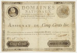assignat. Assignat de 500 livres, signature manuscrite, [1790] ; 13,5 x 19,5 cm (un peu sali).