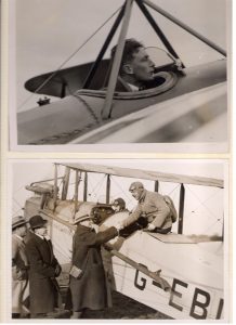 Larry L. Carter, lauréat de l'Aerial Derby à Croydon (1922). - Poignée de main du lieutenant Freri depuis son avion avec l'industriel Theodore Instone, avant l'essai d'un nouveau parachute.