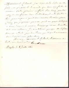 Caroline BONAPARTE (1782-1839) sreur de Napoléon, épouse de Murat, Reine de Naples. L.S., Naples 8 juillet 1812, à un colonel ; demi-page in-4.