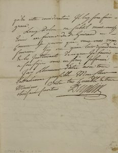 Belle et rare lettre concernant la Compagnie des Indes. Il a écrit en faveur de son protégé à M. de Pressigny, qui a répondu ne rien pouvoir prendre sur lui, vu les faits dont Guiraud se trouve chargé par une procédure. « J'en ay conferé icy avec la Compagnie qui est si outrée des friponneries dont led. Guiraud Guichard et leurs complices sont accusés que ma sollicitation a été assez mal receüe. Cependant j'ay entrevu par les discours de M. Hocquart chargé de la correspondance que la compagnie se determineroit a faire grace audit Giraud sil la meritoit en faisant une confession generalle et bien sincere de toutes les manreuvres auxquelles il peut avoir eu part directement ou indirectement et de tout ce qui peut en estre venu a sa connoissance. A sa place j'accepterois la voye qui m'est offerte parce que pour percer la verité on l'offrira à quelques autres de ses complices qui pour se soustraire aux poursuittes qu'ils ont à craindre ne manqueront pas de l'accepter et de charger Guiraud luy meme qui alors trouvera tout chemin clos pour obtenir grace ». Dupleix avoue ne pas aimer se mêler d'affaires de cette espèce ; seule une recommandation comme celle de son ami pouvait l'y déterminer. « Si donc Guiraud veut tirer son épingle du jeu qu'il se deboutonne et avoue tout sans deguisement soit juridiquement devant l'intendant qui a un arrest d'attribution soit par une declaration signée de luy qu'il poura adresser a Mr Hocquard ou meme a moy, parce que je n'en ferois usage qu'apres m'estre assuré qu'en cette consideration il luy sera fait grace ».